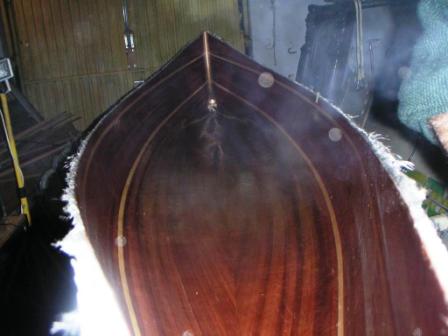 Die erste Leiste Beachte, was Ted Moores dazu sagt. Tip Schraube die erste Leiste an den Mittelspant, Spant 0, mit Schrauben an. ( Leiste vorbohren ) Ein gutes Maß ist, wenn die Höhendifferenz, der Bogen am Bug und Heck, 3 cm bis 5 cm beträgt, nicht mehr. ( Verwindungen werden zu stark ) Fixiere die Leiste im Wunschmaß am Außensteven mit einer Schraubzwinge und Schraube die Leiste an die Mallen - bis Mall 5. Schraube kleine Stützklötzchen unter die erste Leiste so dass diese Klötzchen den Druck aufnehmen können ,den die spätere Verkeilung verursacht. Textende Weiterer Text folgt - dann strukturiert zu den Bildern. | |
