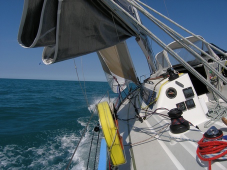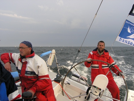 Olli fährt den Start zur Skagen- Rund, 31.Mai 2004 - 17.10 Uhr. 18.30 Uhr, Wind 18-20 kn, NO |