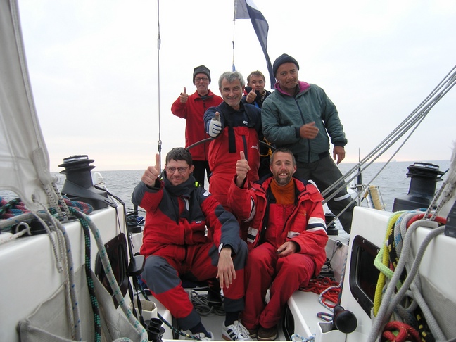 | Geschafft, Zieldurchgang SKAGEN RUND 2004 - 05. Juni 2004, 06.05 - 25 sek. Uhr. Alle sind glücklich und haben eine großartige Leistung vollbracht. 810 sm nach dem Ablegen am 26.05.2004 - Flens-Förde. Davon 565 sm nach Logge für das Skagen Race. Jetzt zum Frühstück nach Strande und dann nur noch 45 sm Kreuzkurs nach Haus. Alle lachen... und wer lacht hat noch Reserven. Ps. Die ersten Anmeldungen für 2006 liegen bereits vor.!! |